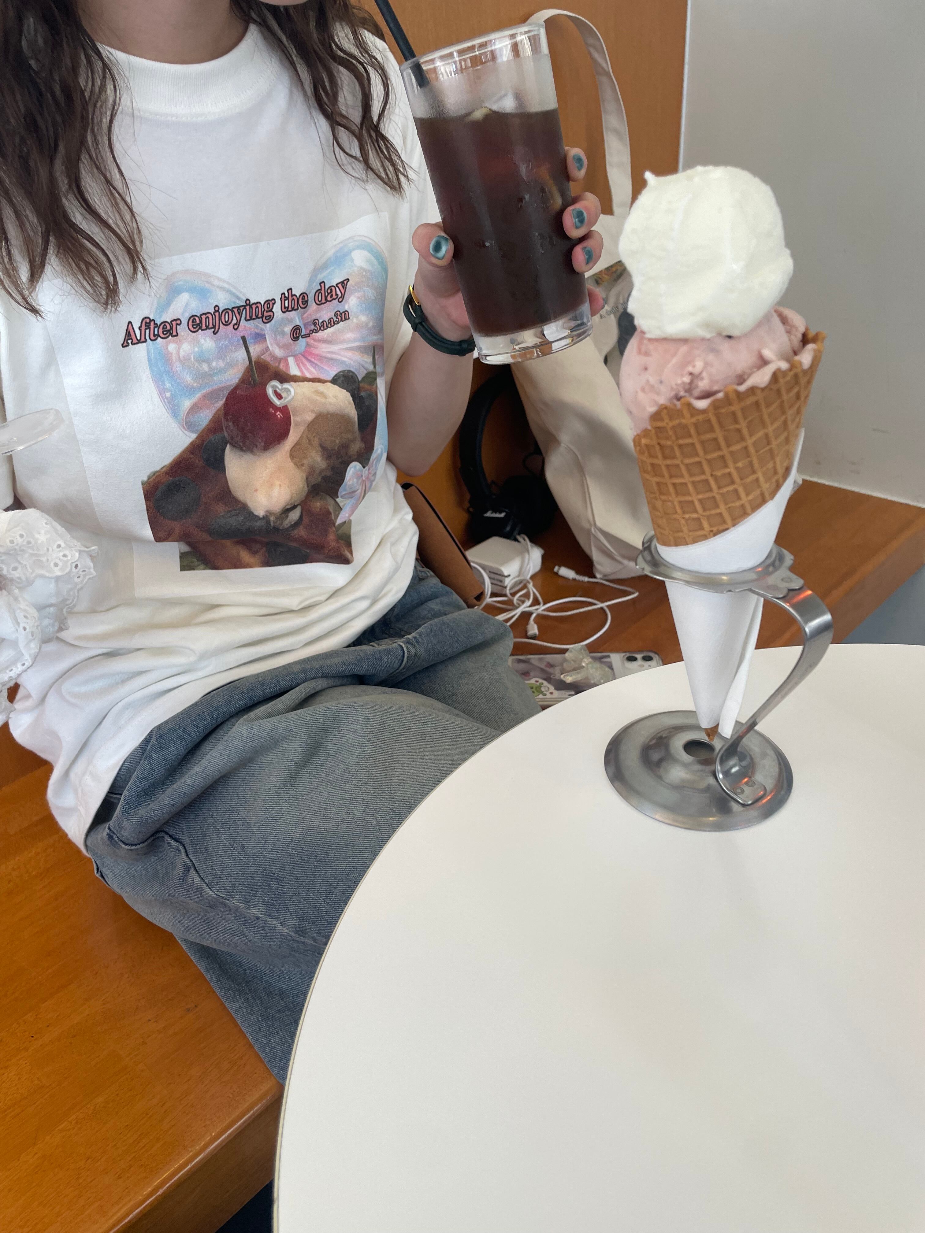 Cherry waffle ribbon T-shirts